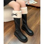 ブーツ Y2K リボン エコファー配色ロングブーツ 厚底 ムートン ロングブーツ レディース