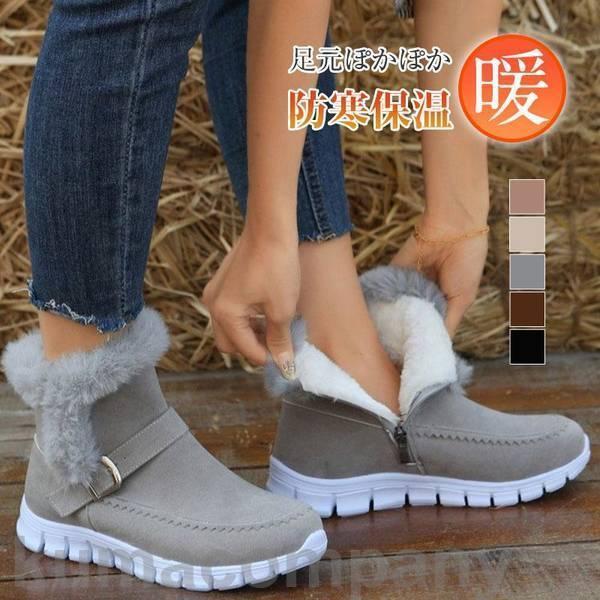 ムートンブーツ レディース 裏ボアブーツ フワフワファー スノーブーツ 女性 裏ボアシューズ 楽チン 暖かい フラットシューズ 冬 ブーツ