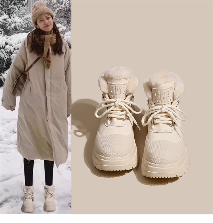 全商品10%OFFクーポン配布中 スノーブーツ レディース ムートンブーツ 北海道 可愛い スノーシューズ ミドル フェイクファー レースアップ 2way 冬靴 女子 5cm 厚底 長靴 滑り止め 暖かい 防寒 もこもこ 歩きやすい おしゃれ 美脚効果 細見え 日常 高校生 22.5-25CM