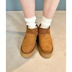 ブーツ 5cm厚底 ファー付き ムートン風ショート ブーツ レディース