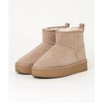 ブーツ 5cm厚底 ムートン風 内ボア フラット ショート ブーツ レディース