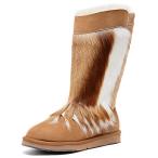 【並行輸入品】Aumu レディース 伝統的な木製ビーズストリング シープスキン ファー ムートンレザー スタイリッシュなニーハイ 冬用スノーブー