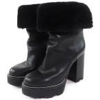 LOUIS VUITTON ルイ・ヴィトン ブラックxゴールド金具 39 (約25cm) レディース レザー ムートン ボア パイピング ロングブーツ