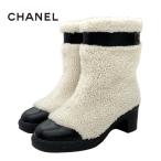 極美品◎CHANEL シャネル G34080 ココマーク・ロゴ レザー使い ムートンブーツ/ ショートブーツ ブラック ホワイト 35 イタリア製 レディース【中古】