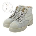 シャネル CHANEL ブーツ ショートブーツ 靴 シューズ ハラコ スエード ムートン ベージュ グレー ココマーク レースアップ