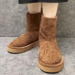 フェンディ ブーツ 靴 FENDI レディース FFセームレザー 総柄 ミドル丈 ボア シープスキン ローブーツ アプレ シック FDL8T8606ASA1