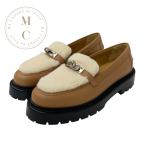 エルメス HERMES アイコン ローファー 革靴 靴 シューズ レザー ムートン ブラウン ホワイト 未使用 モカシン ケリー金具