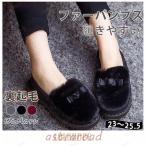 ファーパンプス レディースシューズ 歩きやすい 裏起毛 モカシン エコファーパンプス ぺたんこ スリッポン 黒 もこもこ 暖かい ローヒール靴 冬 痛くない