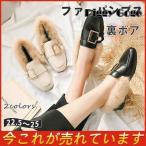 モカシン レディース ファーパンプス 靴 冬 ボア シンプル 裏起毛 フェイク ムートン ローファー 防寒 シューズ あったか