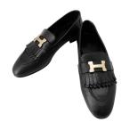 【エントリーでポイント10倍】 エルメス ローファー レディース モカシン パリ H金具 革靴 シューズ 40サイズ HERMES H201199Z レザー ブラック 黒 シルバー金具 美品【中古品】
