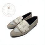 エルメス HERMES ロワイヤル ローファー 革靴 靴 シューズ レザー ベージュ グレー モカシン フラットシューズ H金具 フリンジ