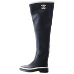 CHANEL シャネル 22AW ココマーク ラバー サイハイ ロングレインブーツ ブラック レディース G39625