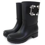 未使用品 MONCLER モンクレール ブーツ レインブーツ レディース パンチング フラワー ワッペン ブラック ラバー #36 23cm