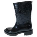 LOUIS VUITTON ルイヴィトン ドロップス フラットハーフ モノグラム レイン ロングブーツ ブラック レディース