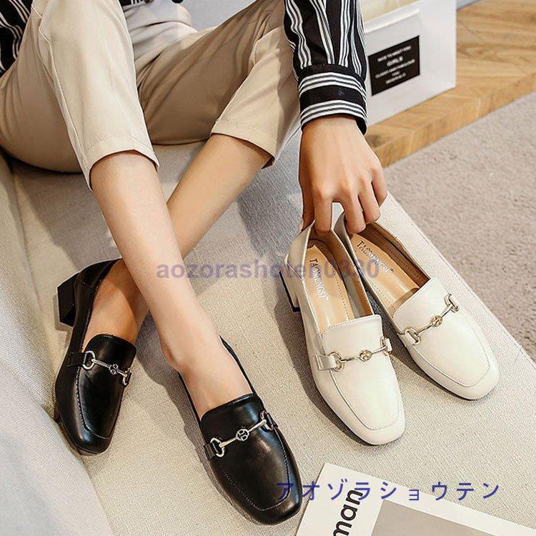 パンプス レディース ローファー 秋 冬 黒 白 おしゃれ かわいい 30代 40代 50代 大きいサイズ ローヒール ぺたんこ ^bo-423^