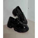 ローファー 10D53-SZ エナメル チャンキーヒール ボリュームソール ローファー レディース
