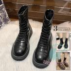 レディース ブーツ 厚底 レースアップブーツ 原宿系 韓国ファッション ショートブーツ 歩きやすい おしゃれ 秋と冬 ハイトップ レザー ワークブーツ