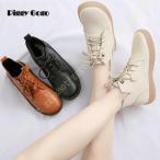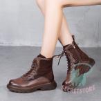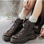 ショートブーツワークブーツレディース編上げブーツハイカット本革フラットお嬢様学生大人靴春秋冬厚底イギリス風革ブーツローヒール