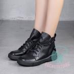 本革 ショットブーツ レディース ワークブーツ 秋冬 厚底 牛革 編み上げ 2TYPE 裏起毛(ボア)なし/あり 防寒 暖か ジップアップ 通学 通勤