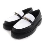 未使用品★HERMES エルメス 25AW モカシン アイコン ケリーバックル レザー ローファー ブラック ホワイト 37.5 箱・保存袋付 イタリア製