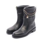 未使用品 CHANEL シャネル チェーン レザー ブーツ ショートブーツ G39170X56609 #35 #22.0 カーフ ブラック レディース ココマーク
