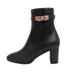 【名東】エルメス ショートブーツ ジェフ 黒 シルバー金具 レザー レディース シューズ 女 靴