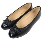 美品☆CHANEL シャネル G02819 バレリーナ ココマーク レザー バレエシューズ ベージュ ブラック 35.5 箱付き イタリア製 レディース