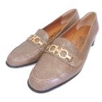 サルヴァトーレフェラガモ Salvatore Ferragamo ガンチーニ ビットローファー リザード 型押し レザー 金具 7 D 約24.5cm ベージュ 系
