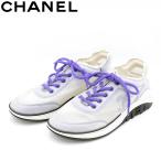【A02378】CHANEL シャネル ココマーク G34764 ファブリック スニーカー 40 ホワイト×パープル