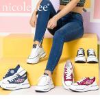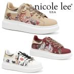 2025新作 数量限定 NICOLE LEE ニコールリー LTS23016 キラキラスパンコール デニム シューズ レディース プラットフォームレースアップスニーカー フラワー刺繍