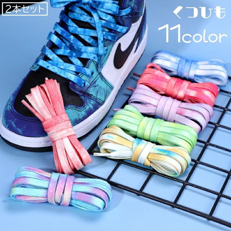 送料無料 靴紐 くつ紐 シューレース 平紐 2本セット 左右セット 男女兼用 付け替え 交換 グラデーションカラー 藍染め風 スニーカー用 シューズ用 運動靴 平型 フラット 1足分 カラフル かわいい カジュアル 気分転換 イメージチェンジ おしゃれ 青 ピンク 紫 黄 緑 灰