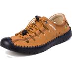 スポーツ サンダル メンズ 結ばない 靴ひも PUレザー 水遊び ゴム留め 通気性 軽量 履きやすい(ブラウン, 26.5 cm)