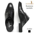 UN SNOBBISH ビジネスサンダル シューズ 紳士 外羽根ストレートチップタイプ 靴ひもゴム 合成皮革 無地 ブラック 爆買