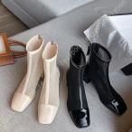 サマーブーツ レディース 通気性 アンクルブーティ 大きいサイズ 夏ブーツ メッシュ 美脚 5センチ ハイヒール 歩きやすい 黒 おしゃれ バックジッパー 無地