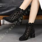 サマーブーツ 夏ブーツ メッシュ ファッションサンダル レディース 太めヒール メッシュ ローヒール ブーツサンダル カジュアル 美脚 2.5cm バックジッパー