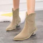 ショートブーツ レディース ヒール6cm 歩きやすい 疲れない ローヒール ウエスタンブーツ 黒 白 ショート ブーツ 太めヒール おしゃれ かわいい 旅行