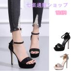 13CMハイヒール 厚底パンプス 美脚 オープントゥ フォーマル パーティー ピンヒール サンダル レディース アンクルストラップ 痛くない キャバサンダル