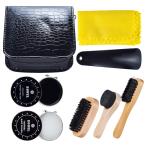 【並行輸入品】YUET 靴磨きキット クリーニング シャイン ケア バレルセット ブラウン ブラック レザー ブラシ付き トラベルケース ラグジ