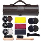【並行輸入品】YUET 靴磨きキット クリーニング シャイン ケア バレルセット ブラウンブラックレザー ブラシ付き トラベルケース ラグジュア