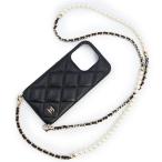 (新品・未使用品)CHANEL シャネル AP4114 マトラッセ パール チェーン ショルダー キャビアスキン ブラック ボルドー 携帯 スマホケース iPhone 15 Pro レザー