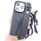 スマホケース カードケース付きレザー調ストラップiPhoneケース