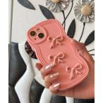スマホケース リボンモチーフ ガーリー マット / なみなみフレーム スマホカバー iPhoneケース ( 12 / 13 / 14 / 15 / 1