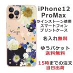iPhone12 Pro Max ケース アイフォン12プロマックス カバー ラインストーン かわいい らふら フラワー 花柄 押し花風 フラワーアレンジ