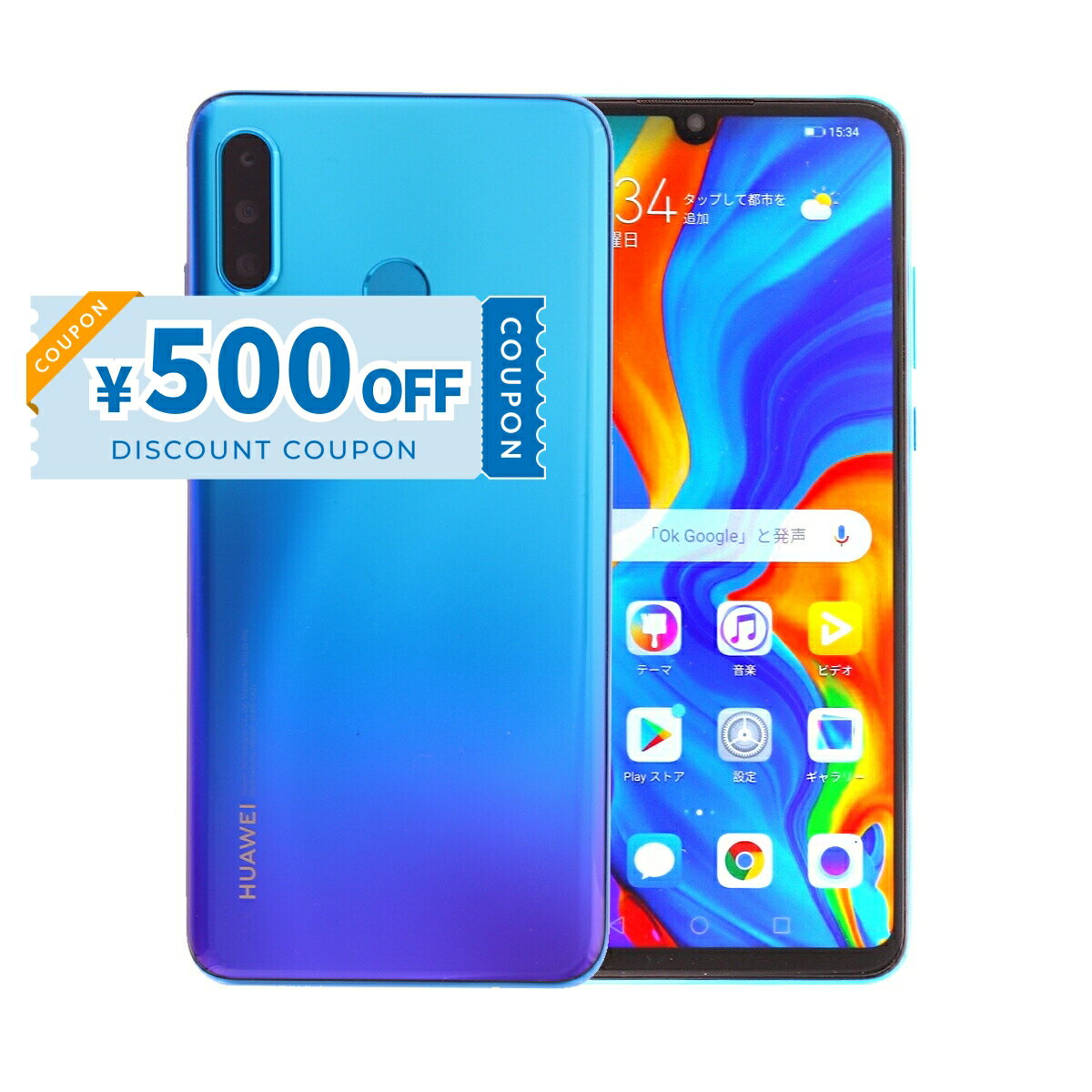 【中古】 Huawei P30 Lite MAR-LX2J 64GB SIMフリー [Cランク] 中古スマホ 中古 スマホ スマートフォン 本体 端末 保証付き 即日発送 楽天モバイル