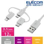 エレコム Lightning/ Type-C/ micro Bコネクタ 3in1スマートフォン用USBケーブル 1.2m 3A(ホワイト) MPA-AMBLCAD12WH 返品種別A
