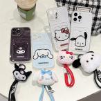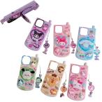 ストラップ付き iPhoneケース iPhone16 クロミ キティメロディ 鏡付き 折りたたみ プリン ポチャッコ シナモロール スマホケース iPhone15/14/13/12/11