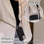 iPhoneケース チェーンベルト付き スマートフォンケース 黒 レザー調 キルティング スマホカバー 携帯カバー ショルダーストラップ 落下防止 保