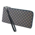 印伝 甲州印伝 印傳屋 上原勇七 財布 スマホウォレット スマホケース 長財布 5028 七宝繋ぎ 紺地×白漆 鹿革 本革 レザー 和柄 ブランド YM01