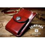 サドルレザー スマートフォンケース ウォレット機能付 ネックストラップ付 ビンテージ染めバーガンディー スマホケース