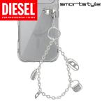 送料無料 DIESEL スマホストラップ チャーム 携帯用 スマホアクセサリー ブランド ロゴ入り おしゃれ ストラップホルダー & ダストプラグ付き [ シルバー ]